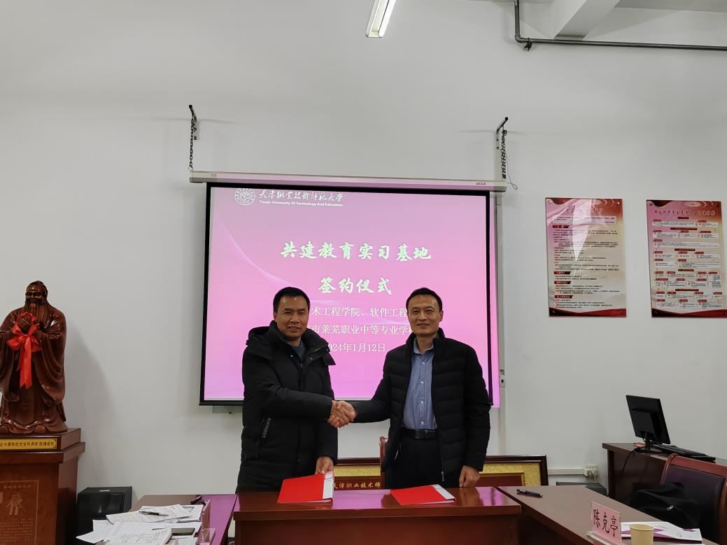 为了进一步加深学校间的深入合作,新葡的京集团4321新葡的京集团4321与济南市莱芜职业中等专业学校《共建教育实习基地协议》签约仪式于2024年1月12日下午在新葡的京集团4321举行。济南市莱芜职业中等专业学校副校长聂荣学、教科室主任陈克亭、教科室干事刘俊泉,以及新葡的京集团4321院长石连栓、党委书记蔡振山、教学副院长武志峰、党委副书记王蕾、相关系室主任出席了本次签约仪式。